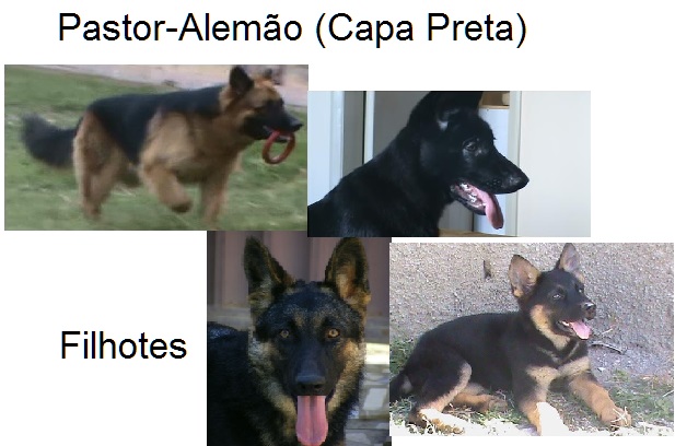 Acima, os pais e dois filhotes de 1 e 2 anos, mostrando a pelagem padrão das ninhadas.